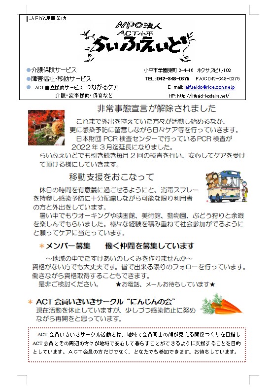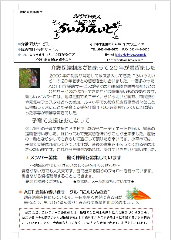 パティオ 2021年3月号~2022年3月号 - NPO法人ACT小平らいふえいど